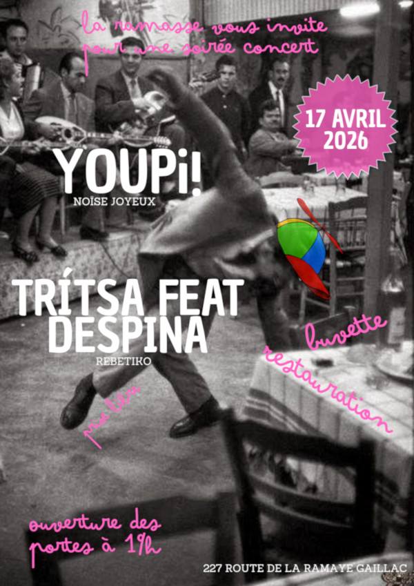 +++++++++ CONCERTS +++++++++jeu. 16/04/26 - Saint-Paul-la-Roche (24) @ Les Paulissonnes ven. 17/04/26 - Gaillac (81) + Trítsa feat. Despina @ La Ramaye